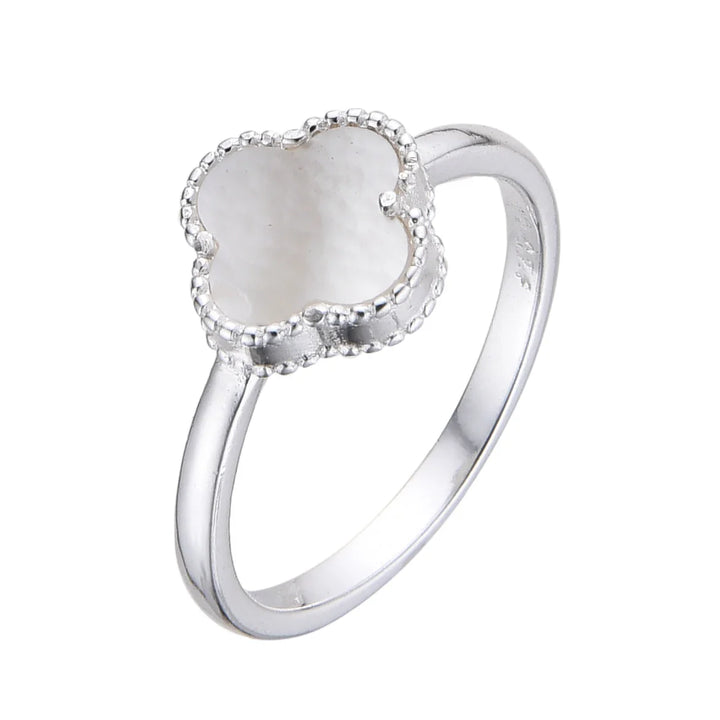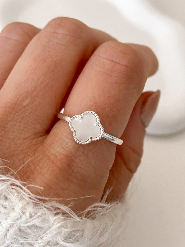 ANILLO TREBOL UNIQUE PLATA ITALY BLANCO