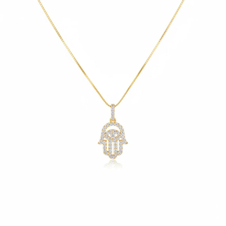 COLLAR PLATA L MANO HAMSA CIRCONIAS 45+5CM